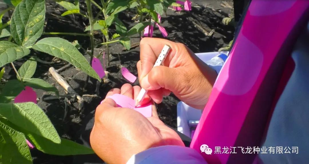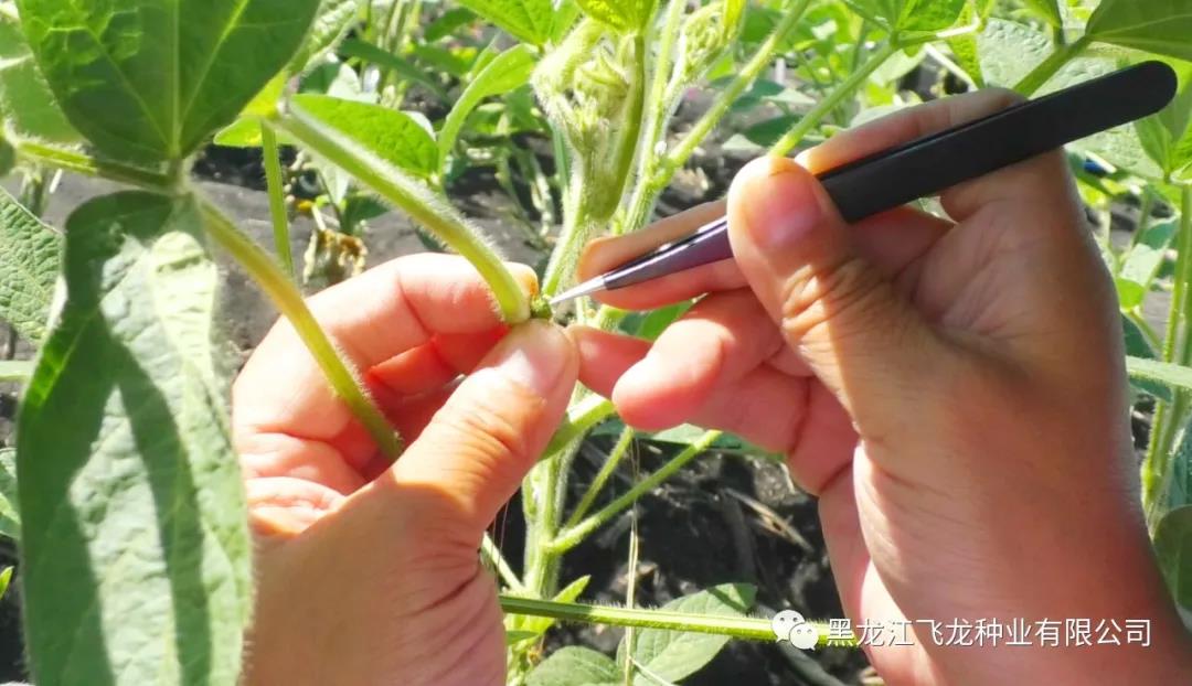 大豆雜交成活率是影響育種效率的重要因素之一。大豆為嚴格的閉花授粉作物,花器小、發(fā)育快、分布零散,受精過程對環(huán)境有較高要求。飛龍種業(yè)大豆科研育種雜交圃,嚴格按照飛龍種業(yè)首席專家杜維廣研究員的規(guī)劃,父母本相鄰,父本條播,母本穴播,規(guī)范種植。